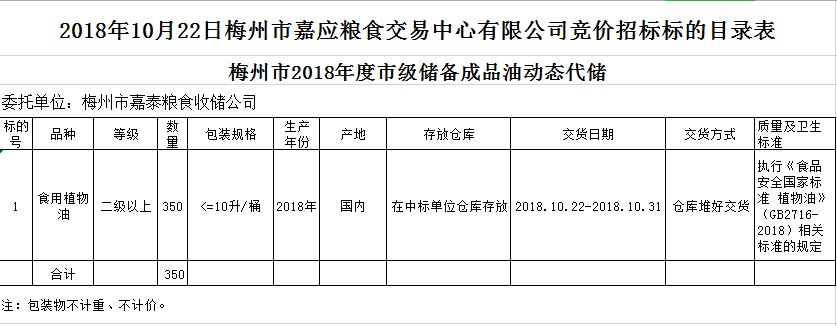 梅州市2018年度市級(jí)儲(chǔ)備成品糧油動(dòng)態(tài)代儲(chǔ)公開招標(biāo)公告
