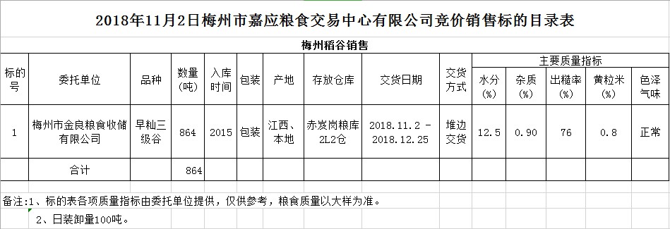 交易時(shí)間和地點(diǎn):2018年11月2日(星期五)上午10時(shí)15分。廣東省梅州市彬芳大道南161號(hào)梅州市糧食交易中心3樓。