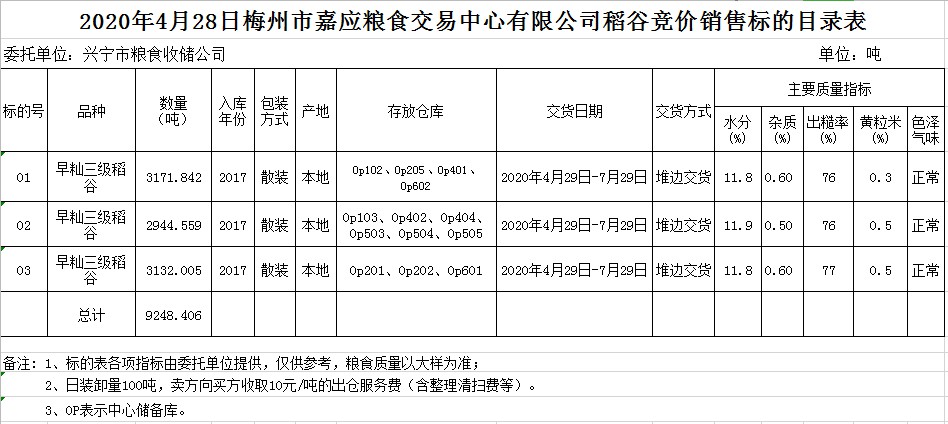 交易時間和地點:2020年4月28日(星期二)上午10時。廣東省梅州市彬芳大道南161號梅州市糧食交易中心3樓。