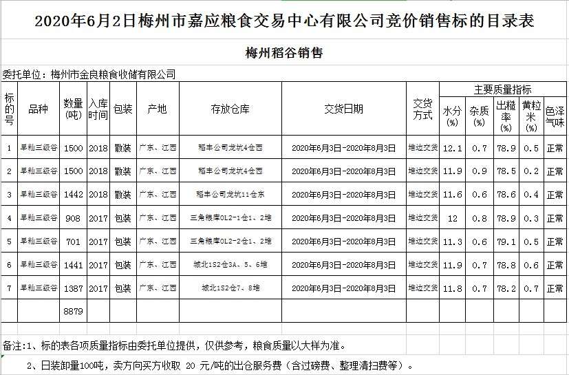 交易時(shí)間和地點(diǎn):2020年6月2日(星期二)上午10時(shí)15分。廣東省梅州市彬芳大道南161號梅州市糧食交易中心3樓。