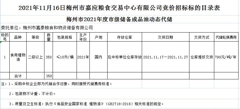 梅州市2021年度市級儲備成品糧油動態(tài)代儲及包干輪換費用公開招投標公告