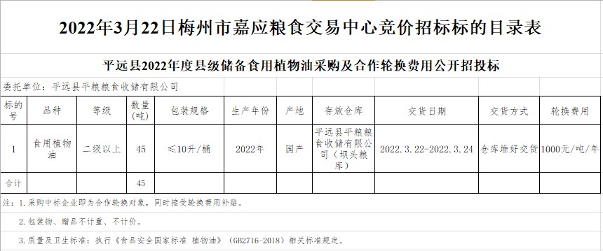 平遠(yuǎn)縣2022年度縣級(jí)儲(chǔ)備食用植物油采購(gòu)及合作輪換費(fèi)用公開招投標(biāo)公告