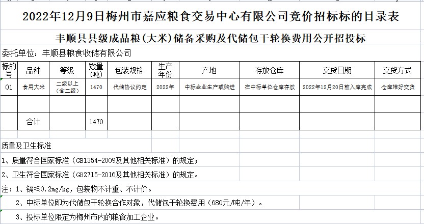 2022年豐順縣縣級(jí)動(dòng)態(tài)儲(chǔ)備成品糧(食用大米)及包干輪換費(fèi)用公開招標(biāo)公告