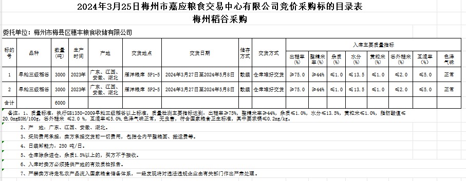 2024年3月25日梅州市梅縣區(qū)穗豐糧食收儲(chǔ)有限公司稻谷采購(gòu)