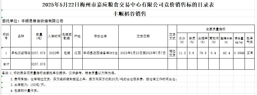 2025年5月22日豐順縣糧食收儲(chǔ)有限公司稻谷銷售