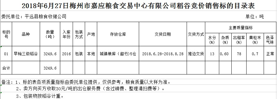 交易時間和地點(diǎn):2018年6月27日(星期三)上午10時。廣東省梅州市彬芳大道南161號梅州市糧食交易中心3樓。